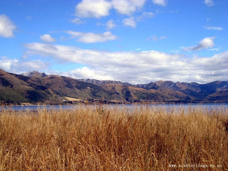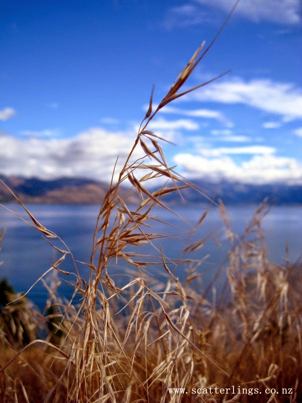 As you can see we're having a very dry summer. The grass is very golden at the moment and the sky very blue. Those clouds are not going to rain. Plenty of water in the lake, though.
