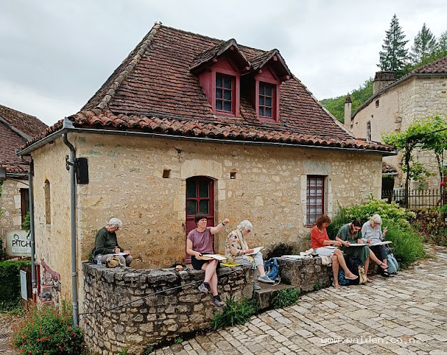 Just a few meters from Perigord Retreats was an old barn with a rambling rose crossing its aging door. Karen had taken a beautiful photo when the shadows cast by the rose across the door were super lovely. It was a romantic scene to paint and a good one to get everyone out of their sketchbooks and out of their comfort zones.