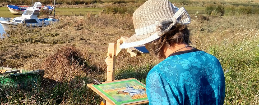 In my mixed media abstracts I often use symbols or writing to tell the story of a journey. In my representational watercolours I'm fascinated by old buildings, boats, and vehicles that seem to have stories and memories inside them and tell of the passage of time.