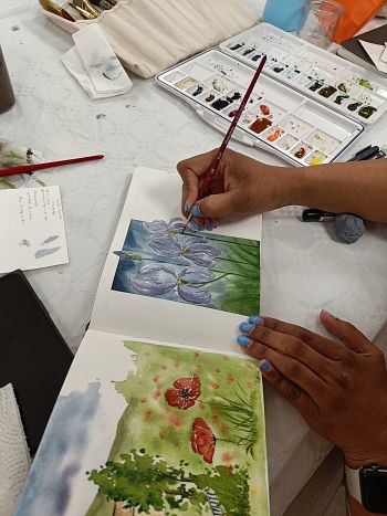I've been teaching people to paint in watercolours since 2017. I've run classes outside giving people the tools to learn to sketch plein air; studio-based classes on painting birds, flowers, and landscapes; and classes on Zoom. Since June 2022 I've been guiding painting holidays annually in France and I can honestly say these trips are some of my favourite days of my year! I'm excited to guide one in Italy this year.
