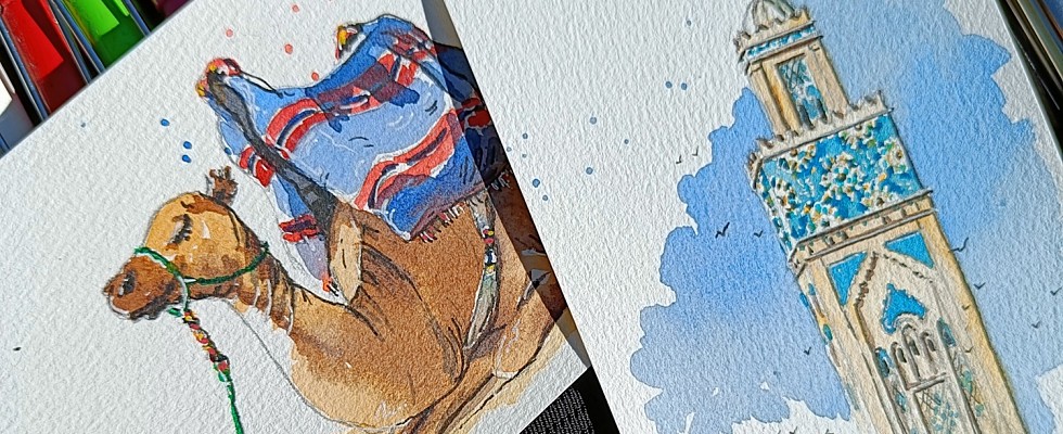 Picture this: seven sun-soaked days based in a gorgeous Marrakech domaine, where we’ll balance painting time with adventures into the city and countryside. Think vibrant souks, exciting bazaars, intricate tiles, warm light, and landscapes begging to be sketched. It’s exotic, colourful, and a whole new cultural playground for your sketchbook.