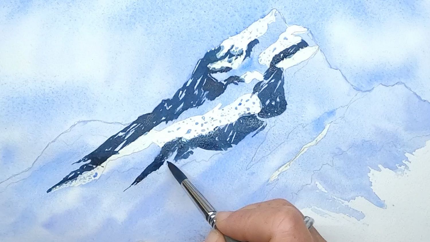 - Sky — wet-into-wet; let dry naturally before painting nearby elements